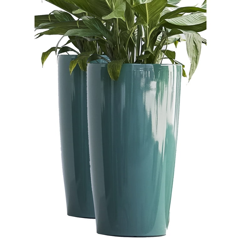 Xbrand Nested Plastic Self Watering Indoor Outdoor Round Tall Planter Pot W Glossy Finish Set Of 2 17 Inch Tall Walmart Com